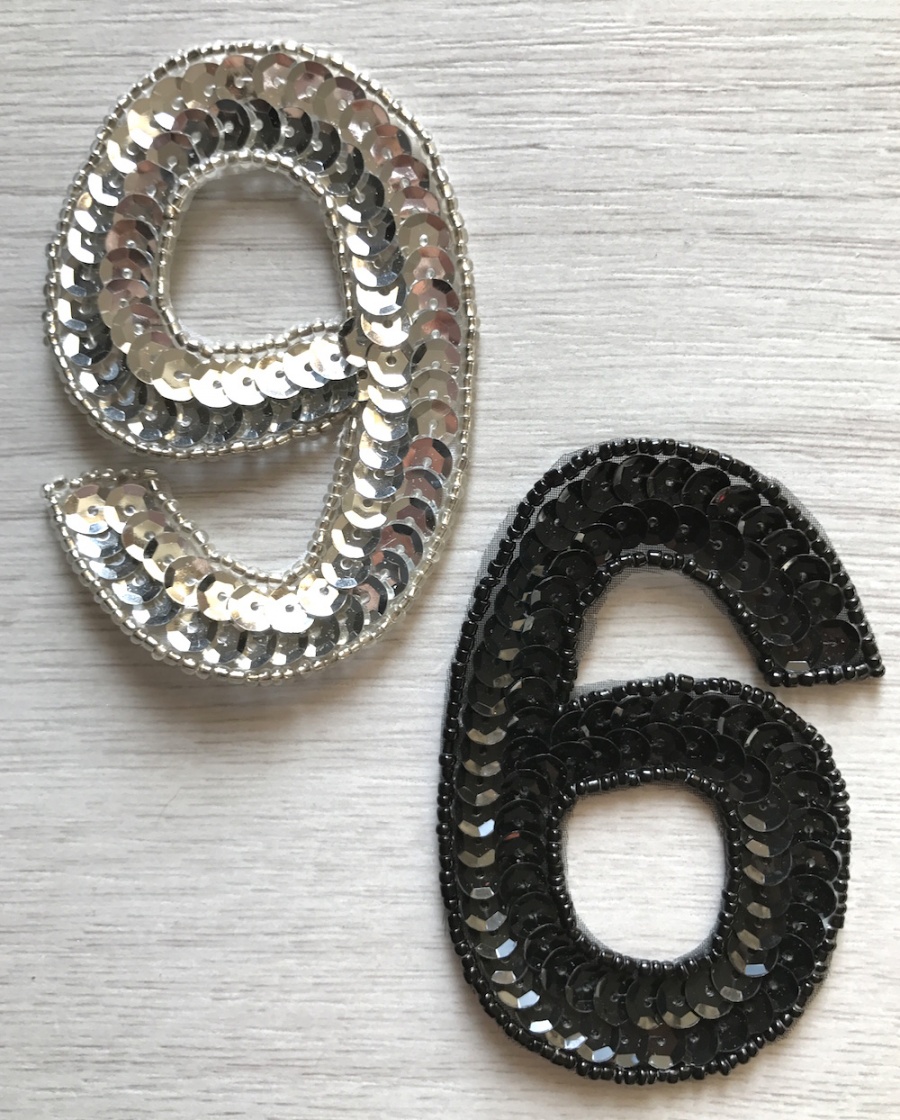 Numero 6 o 9 in paillettes e perline nere: