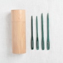 Set aghi da lana in legno con custodia a cilindro in legno, incisa al laser. 4 aghi di due misure diverse