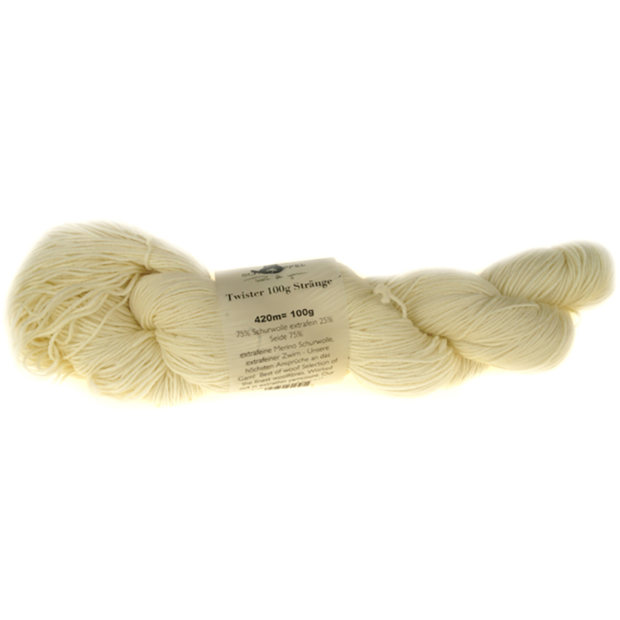 Filato naturale pronto da tingere, non trattato. 100 grammi 420 metri, 75% lana merino, 25% seta. Ferri consigliati 2-3 mm, lavabile a mano.