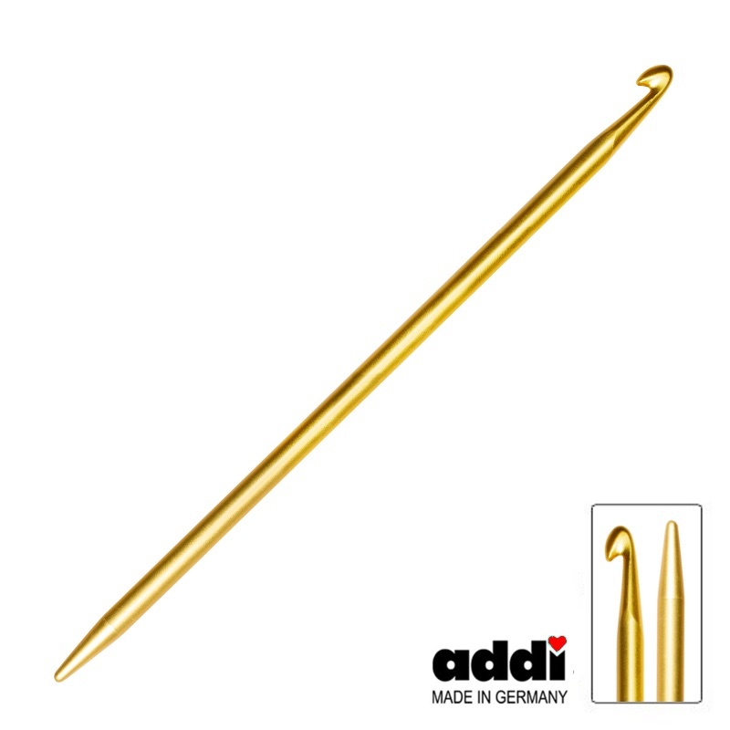Addi Duett, uncinetto e ferro da maglia, due in uno. Uncinetto in alluminio anodizzato, lunghezza 15 cm. da un lato punta di uncinetto, dall'altro punta di ferro da maglia. Perfetto per raccogliere punti, per riparazioni al volo, per uncinettare comodamente grazie all'alluminio scorrevole.