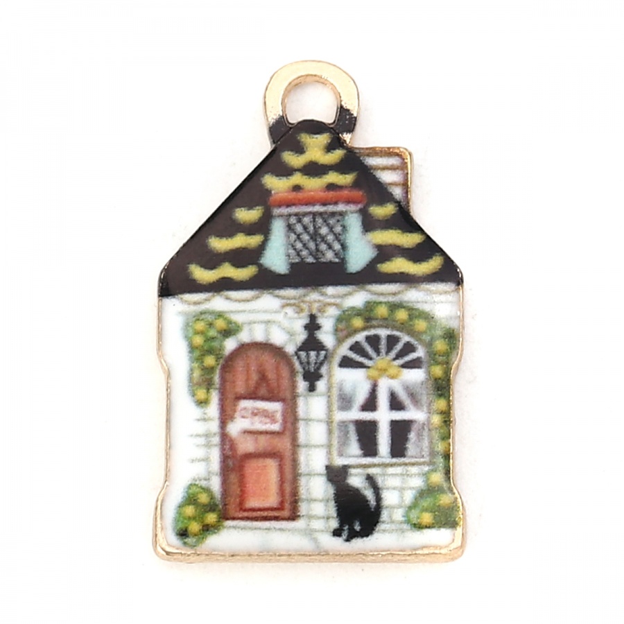 Charm dorato, decorato con smalti. Perfetto per personalizzare capi di maglia e uncinetto. Utile anche per identificare facilmente il dietro e il davanti di una maglia, basta cucirlo dietro sul collo ;)