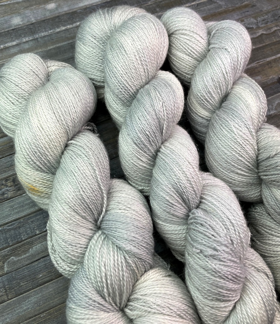 Il glitter di stellina è super morbido ed aggiunge un tocco brillante al filato senza renderlo pacchiano. La percentuale di seta aggiunge lucentezza e lo rende ancora più prezioso. TINTO A MANO!
