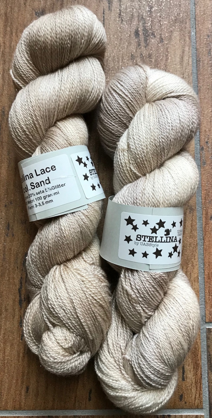 Il glitter di stellina è super morbido ed aggiunge un tocco brillante al filato senza renderlo pacchiano. La percentuale di seta aggiunge lucentezza e lo rende ancora più prezioso. TINTO A MANO!