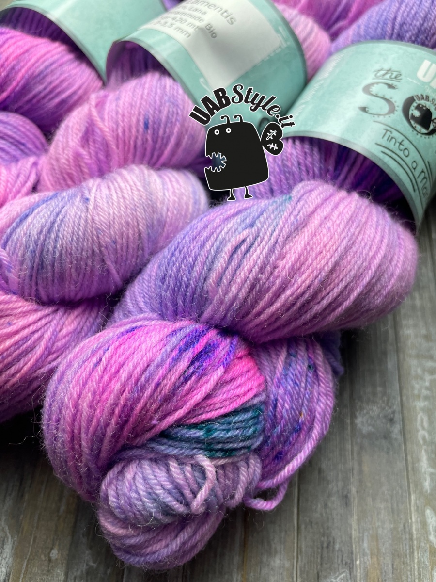 Filato tinto a mano, ogni matassa è unica ed originale. Tintura speckled, con le caratteristiche macchioline irregolari che lo rendono particolare. Filato morbido ma resistente, adatto sia a scialli sia a calze. Composizione: 75% Lana 25% Poliammide. Peso 100 grammi, 420 metri. 2 ply.
