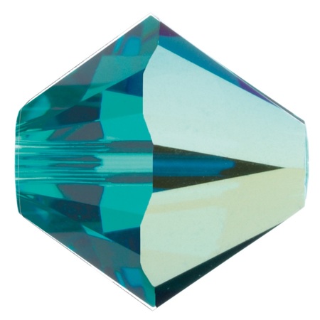 Cristallo originale Swarovski doppio cono da 4 mm colore blue zircon. Foro passante da 0.7mm.