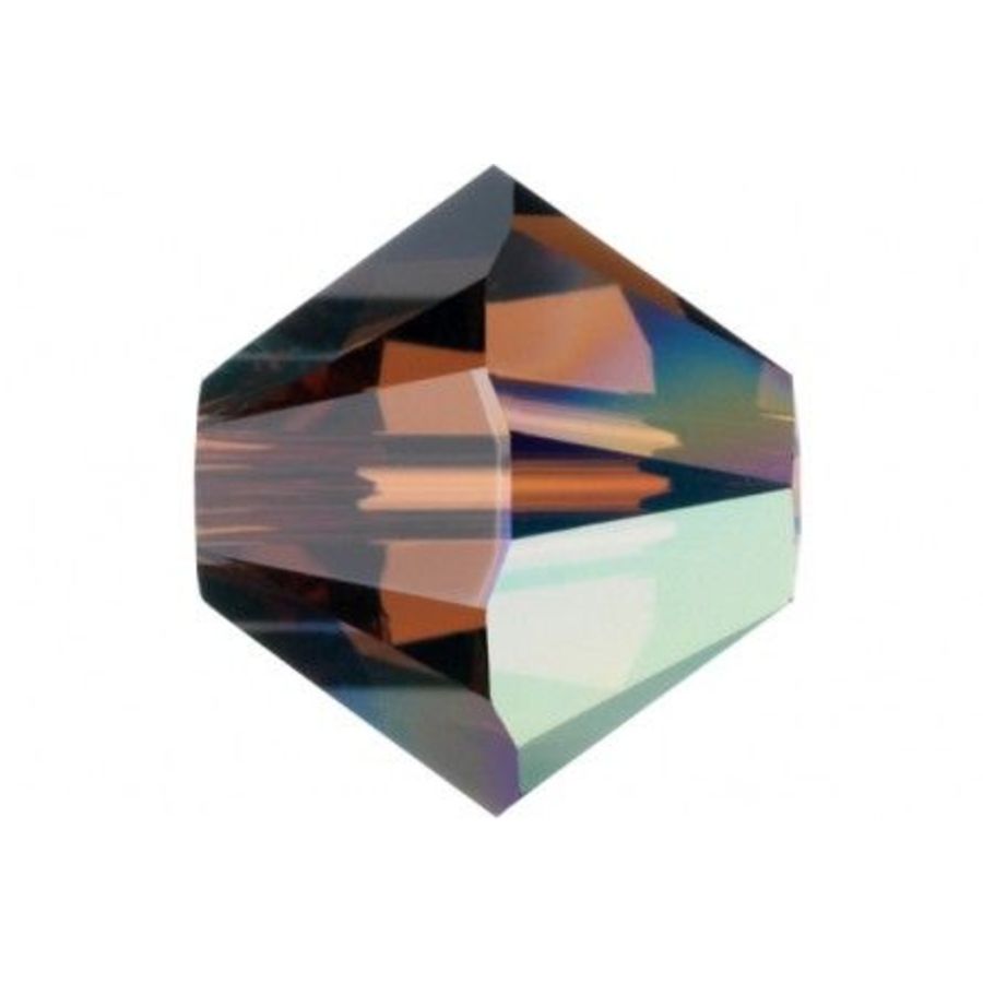 Cristallo originale Swarovski doppio cono da 4 mm colore smoked topaz. Foro passante da 0.7mm.