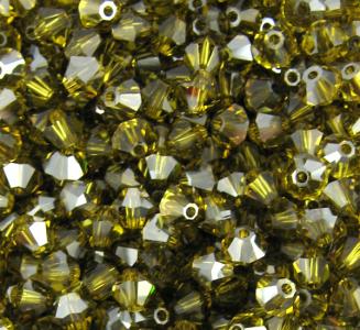 Cristallo originale Swarovski doppio cono da 4 mm colore lime. Foro passante da 0.7mm.