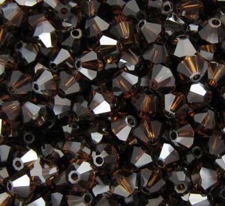 Cristallo originale Swarovski doppio cono da 4 mm colore smoked topaz. Foro passante da 0.7mm.